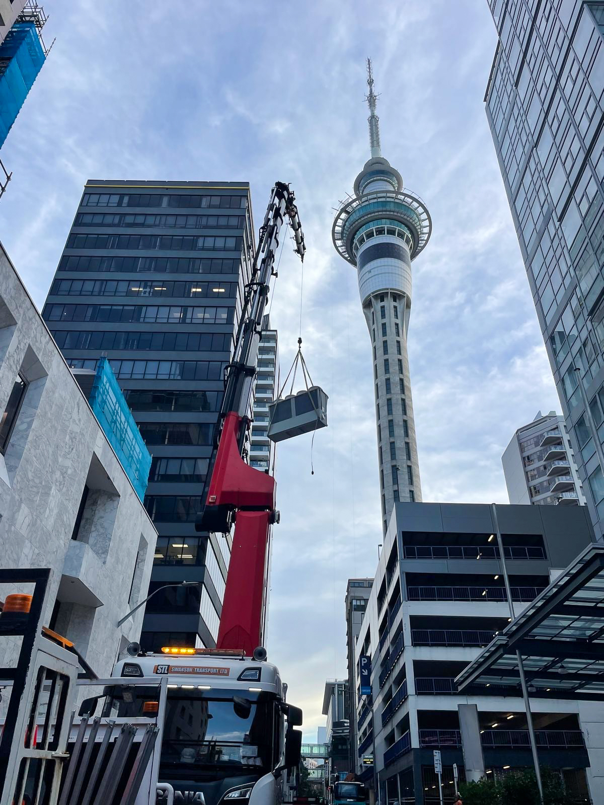 Below are some images of the impressive crane lift to position the heat pumps on the podium roof.